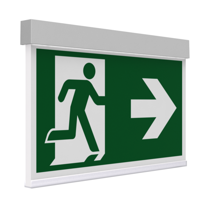Automatische Überwachung der Sicherheitsleuchte mit SelfControl. Planungssicherheit ist durch werkzeuglosen, variablen Einsatz der Piktogramme vor Ort gegeben. Die Piktogramme entsprechend DIN ISO 7010 (Pfeil rechts, links, unten und oben) sind standardmäßig im Lieferumfang enthalten. Auf Anfrage kann die Beschriftung auch nach Kundenvorgabe erfolgen.
