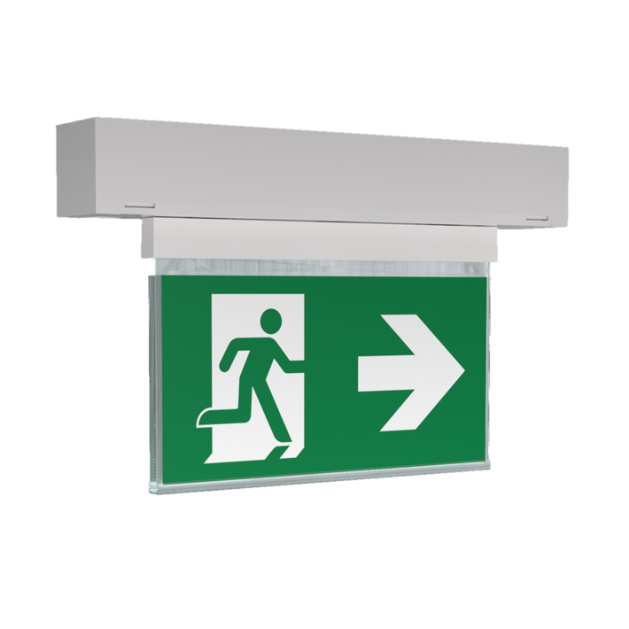 Steuerung und Überwachung über zentrales 24-Volt-Low Power System. Display-Scheibenleuchte mit integrierter Lichtverteilung zur gleichmäßgien Ausleuchtung des Piktogrammes. Geeignet zur ein- oder zweiseitigen Beschriftung. Planungssicherheit ist durch werkzeuglosen, variablen Einsatz der Piktogramme vor Ort gegeben. Ein Piktogrammset entsprechend DIN ISO 7010 (Pfeil rechts, links, oben und unten) ist standardmäßig im Lieferumfang enthalten. Die Universalmontage beinhaltet die Möglichkeit die Leuchte wahlweise als Wand- oder Deckenanbau zu montieren.