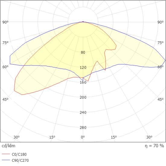 - Minimale Beleuchtungsstärke auf der Mittellinie: 1.00 lx