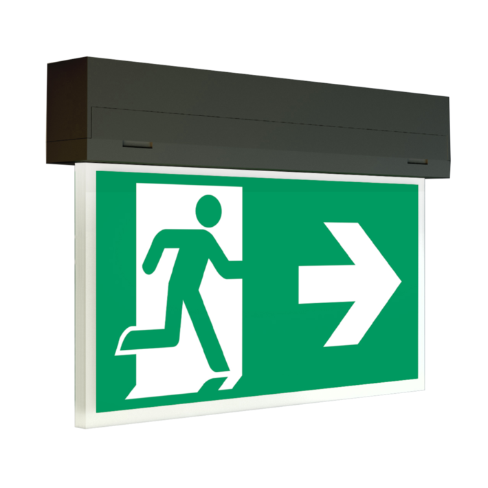 Innovative Kunststoff Rettungszeichenleuchte für Universalmontage. Geeignet zur ein- oder zweiseitigen Beschriftung.