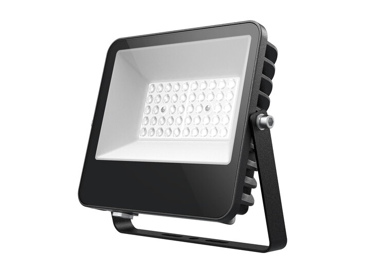 LED-Strahler, Serie SOLID. Gehäuse aus Aluminium-Druckguss, für Außenanwendung geeignet, Farbe: schwarz, pulverbeschichtet. Abdeckung aus gehärtetem Glas. Robustes Gehäuse mit IP 66 und hohem Stoßfestigkeitsgrad IK08. Leistungsstarke LED Technik mit über 140lm/W für effektive Ausleuchtung großer Flächen. Betriebsgerät schaltbar, eingebaut. Äußerst flexibler Einsatz durch flache Bauform und einstellbarem Neigungswinkel. Der Anschluss erfolgt mittels offenem Kabelende.