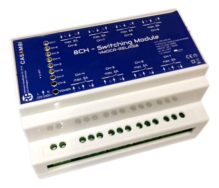 Das CASA RELAIS8 ist mit acht potentialfreien Schaltkontakten ausgestattet. Für jeden dieser Kontakte lässt sich die angegebene maximale Schaltleistung unabhängig realisieren. Zudem ermöglicht die individuelle Ansteuerung aller Kontakte eine flexible Einsatzmöglichkeit. Das erweiterte „Long Range“-Feature gewährleistet eine zuverlässige Steuerung auch über große Distanzen hinweg.