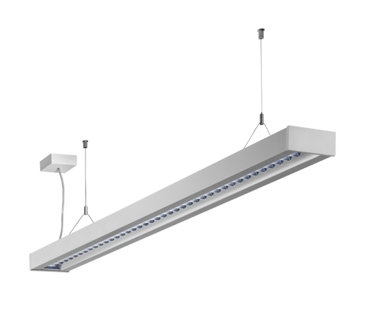 LED-Deckenleuchte, Serie ZOLA, direkt und direkt/indirekt strahlend. Gehäuse aus Aluminium, weiß, pulverbeschichtet. Diffusor Parabolraster, matt. Betriebsgerät schaltbar oder DALI dimmbar, integriert. UGR < 16 und Bildschirmgerecht gemäß EN 12464-1. Ausführung mit Casambi Bluetooth Steuerung verfügbar. DC tauglich.