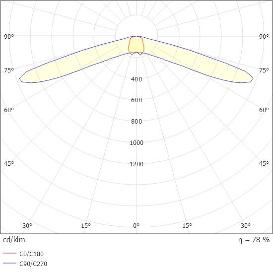 - l Minimum illuminance on centre line: 1.00 lx