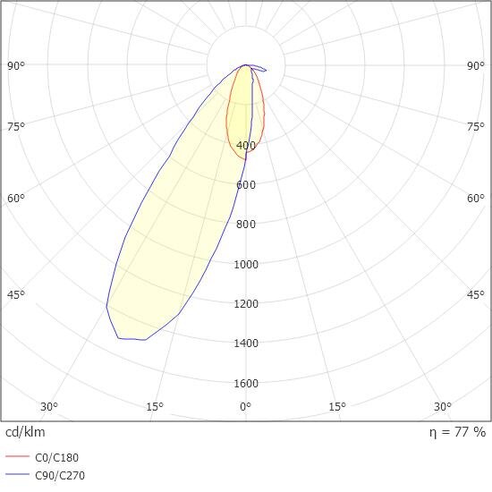 - l Minimum illuminance on centre line: 1.00 lx