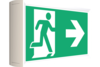 Box-shaped plastic emergency exit sign luminaire for universal mounting. Suited to inscription on one or two sides.