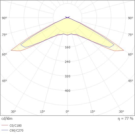 - l Minimum illuminance on centre line: 1.00 lx