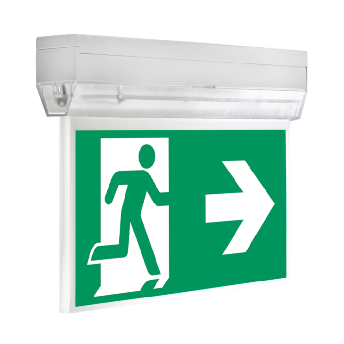 Control and monitoring via central power supply system. Planning certainty is provided by tool-free, variable use of the pictograms on site. A set of pictograms corresponding to DIN ISO 7010 (arrow to the right, left, up and down) is supplied as standard. Universal mounting includes fitting on the wall and ceiling as well as the option of fitting in the ceiling in conjunction with the mounting frame available.
