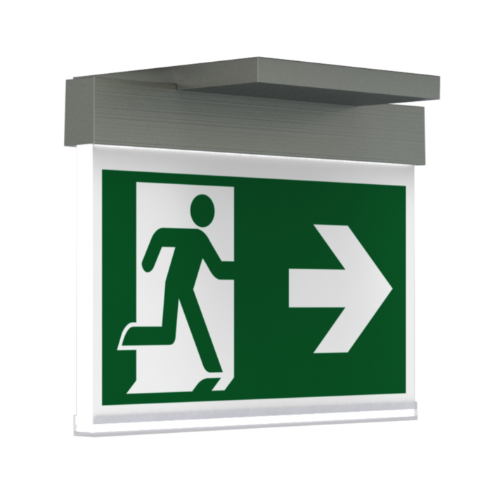 Luminaire moderne à pictogramme de secours en zinc moulé sous pression pour montage encastré au plafond. Grâce à son diamètre d’encastrement de 68 mm, ce luminaire s’intègre élégamment dans de nombreux environnements La signalisation des issues de secours et des voies d’évacuation s’effectue au choix sur une face ou sur les deux faces.