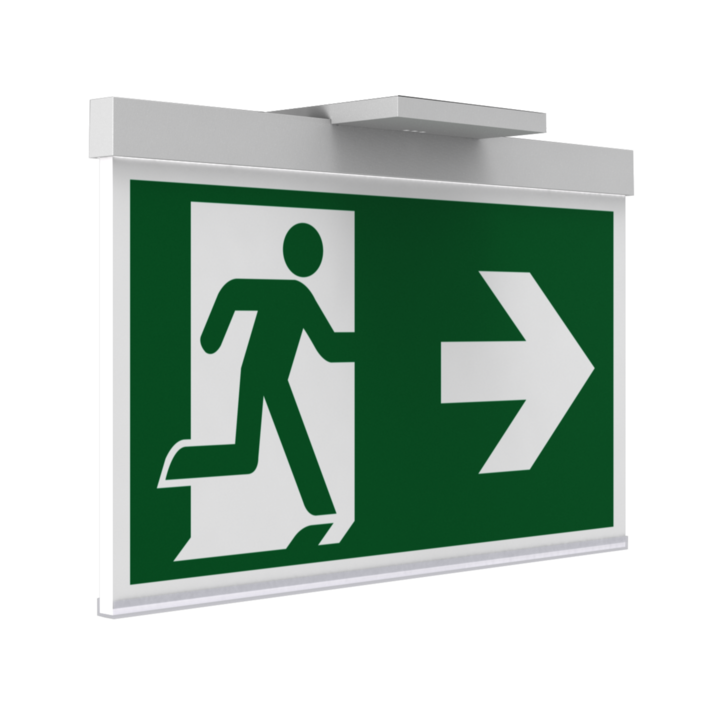 Luminaire moderne à pictogramme de secours en zinc moulé sous pression pour montage encastré au plafond. Grâce à son diamètre d’encastrement de 68 mm, ce luminaire s’intègre élégamment dans de nombreux environnements La signalisation des issues de secours et des voies d’évacuation s’effectue au choix sur une face ou sur les deux faces.