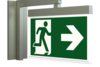 Luminaire moderne à pictogramme de secours en zinc moulé sous pression pour montage mural encastré. La signalisation des issues de secours et des voies d’évacuation s’effectue en angle droit par rapport au mur grâce au support mural, au choix sur une face ou sur les deux faces.