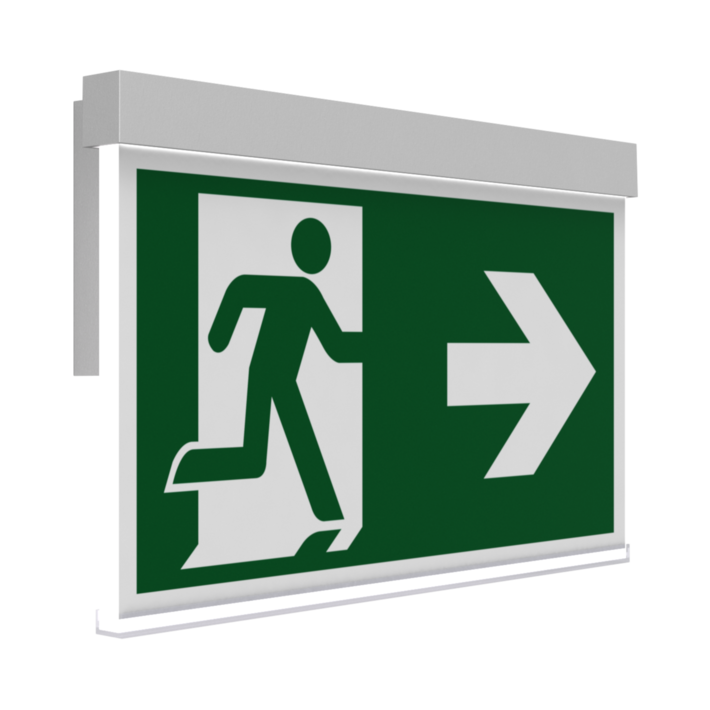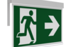 Luminaire moderne à pictogramme de secours en zinc moulé sous pression pour montage mural, pour la signalisation des issues de secours et des voies d’évacuation.