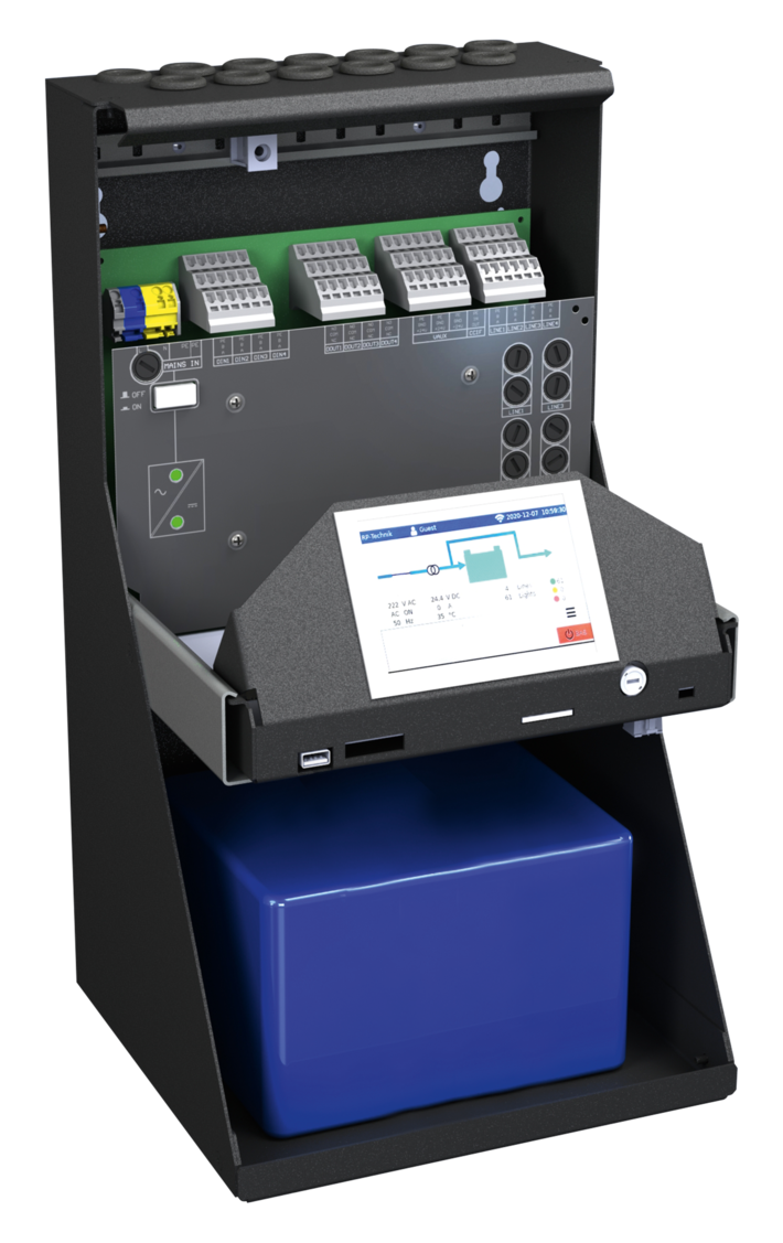 Installation et mise en service faciles grâce à l'assistant de configuration avec auto-configuration intelligente des luminaires. Utilisation et surveillance pratiques via un écran tactile et une interface web moderne depuis n'importe quel terminal. Luminaires programmables et gradables individuellement pour une adaptation flexible aux concepts énergétiques modernes. Commande de scénarios et tests de fonctionnement manuels ou via des programmes horaires. Notifications automatiques par e-mail configurables, par exemple pour les erreurs, les avertissements et les protocoles de test. Journal automatique et diagramme de décharge de la batterie pour chaque test afin de gagner du temps lors de l'entretien et de la maintenance. Grande sécurité pour l'avenir grâce à la possibilité de mettre à jour tous les composants du système via l'interface USB intégrée. Alimentation de secours sûre grâce à une batterie lithium-fer-phosphate longue durée et sans gaz. Compact, léger et facile à entretenir.