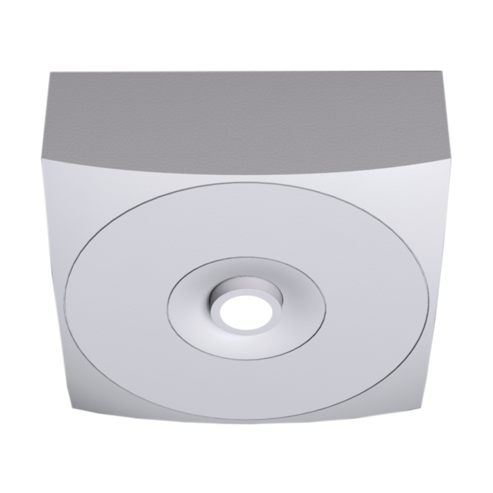 Luminaire de sécurité en zinc-aluminium de haute qualité pour montage en applique au plafond. Le luminaire de sécurité carré qui s’adapte au design du plafond.