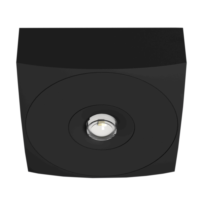 Luminaire de sécurité en zinc-aluminium de haute qualité pour montage en applique au plafond. Le luminaire de sécurité carré qui s’adapte au design du plafond.