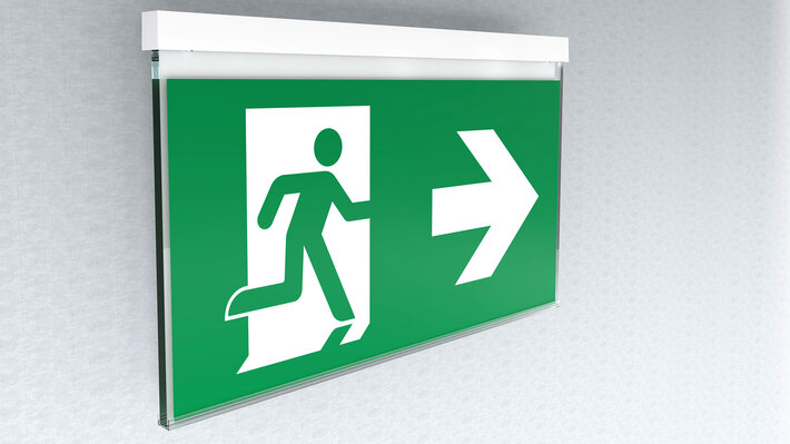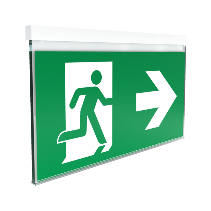 Luminaire à pictogramme de secours en plastique à vitre pour montage mural et pour la signalisation des issues de secours et des voies d’évacuation. Il s’inspire du design de la série de luminaires A, laquelle propose des systèmes pour tout type de montage et a reçu le German Design Award pour son design rectiligne homogène. Les luminaires sont équipés d’ampoules LED modernes et offrent une grande flexibilité grâce à leur système de pictogrammes variables.