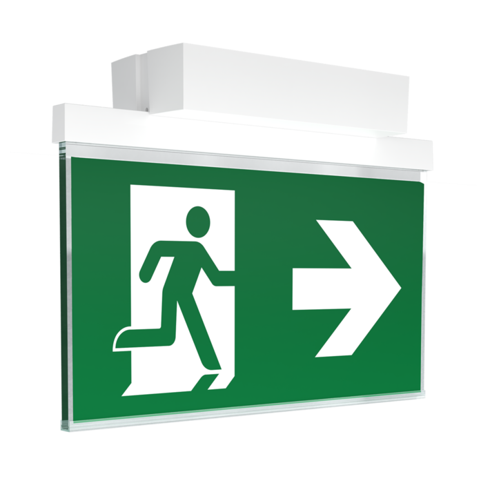 Luminaire à vitre à pictogramme de secours en plastique pour montage en saillie au plafond et pour la signalisation des issues de secours et des voies d’évacuation. Il s’inspire du design de la série de luminaires A, laquelle propose des systèmes pour tout type de montage et a reçu le German Design Award pour son design rectiligne homogène. Les luminaires sont équipés d’ampoules LED modernes et offrent une grande flexibilité grâce à leur système de pictogrammes variables.