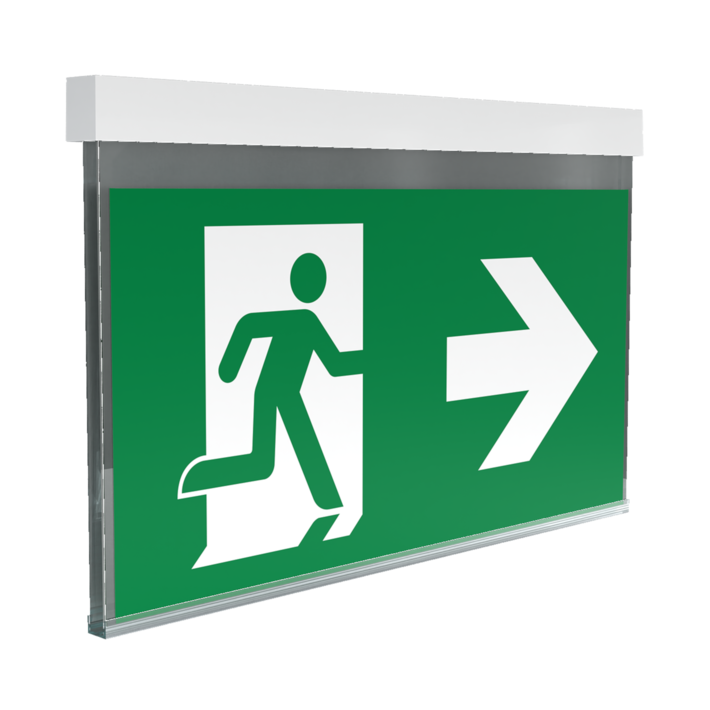 Luminaire à pictogramme de secours en plastique à vitre pour montage mural et pour la signalisation des issues de secours et des voies d’évacuation. Il s’inspire du design de la série de luminaires A, laquelle propose des systèmes pour tout type de montage et a reçu le German Design Award pour son design rectiligne homogène. Les luminaires sont équipés d’ampoules LED modernes et offrent une grande flexibilité grâce à leur système de pictogrammes variables.