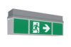Luminaire à pictogramme de secours classique robuste en forme de poutre en plastique avec degré de protection élevé et pictogramme autocollant pour utilisation polyvalente.