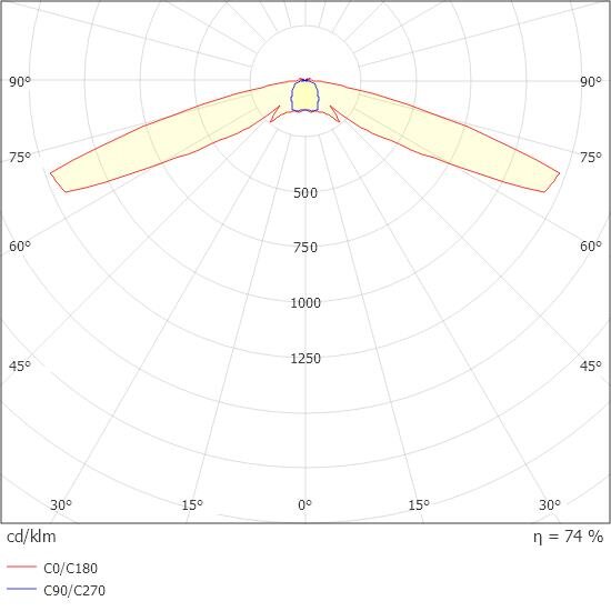 - l Éclairement minimal sur la ligne médiane : 1,00 lx