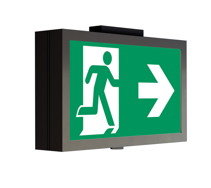 Surveillance automatique de la lampe de sécurité avec SelfControl. Impossible de se tromper lors de la planification grâce aux pictogrammes logiques imprimés. Les pictogrammes conformes à la norme DIN ISO 7010 (flèches à droite, à gauche et en bas) sont contenus dans la livraison standard. L’impression peut également être faite sur demande en fonction des prescriptions du client.