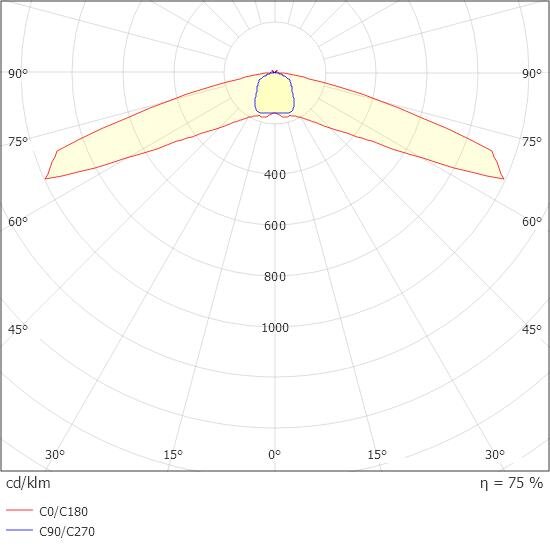 - l Éclairement minimal sur la ligne médiane : 1,00 lx