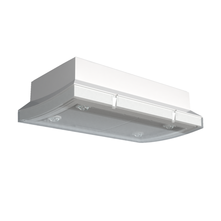 Luminaire de sécurité en plastique avec bandeau de forme convexe.