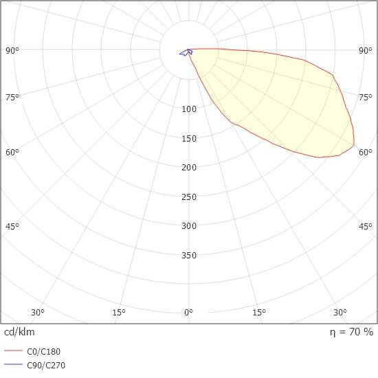 - l Éclairement minimal sur la ligne médiane : 1,00 lx