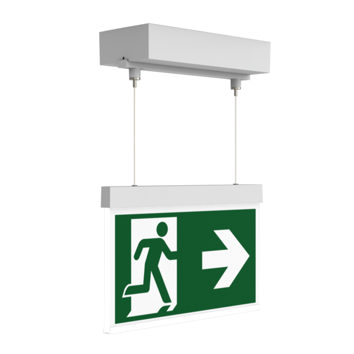 AMDC oprawa z odlewu cynkowego, kierunkowa, sufitowa, montowana na zawiesiu, do oznaczania dróg ewakuacyjnych. Seria A to innowacyjna i spójna rodzina, wysokiej jakości, opraw ewakuacyjnych przeznaczonych do zabudowy lub nabudowy w każdej możliwej konfiguracji montażowej, uhonorowana nagrodą German Design Award. Oprawy z serii A są wyposażone w nowoczesne, wysokowydajne źródła światła LED i posiadają niezwykłą łatwość wymiany piktogramu bez użycia narzędzi.