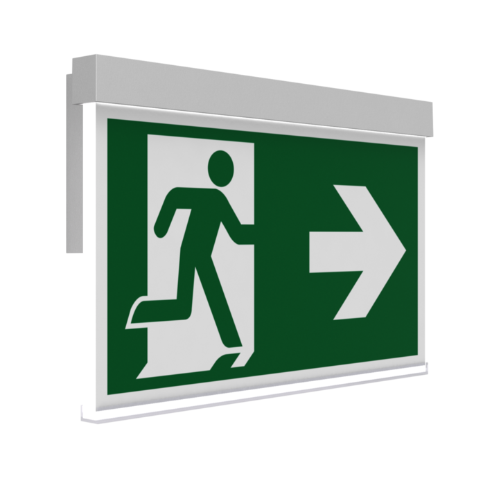 Awaryjna oprawa ewakuacyjna zgodna z PN-EN 60598-1, PN-EN 60598-2-22, PN-EN 7010 i PN-EN 1838.