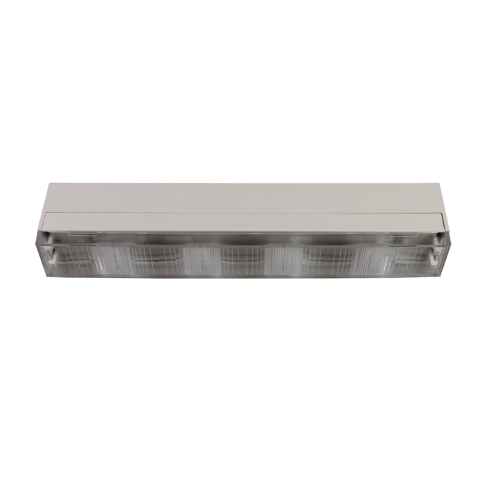 Kompaktowa oprawa awaryjna, z pryzmatycznym kloszem, do oświetlania dróg ewakuacyjnych, zapewniającą zoptymalizowaną dystrybucję światła.Możliwość współpracy z systemem centralnej baterii lub jako oprawa autonomiczna. Obudowę można dyskretnie schować w płaszczyźnie sufitu podwieszanego dzięki opcjonalnej wpuszczanej ramce.